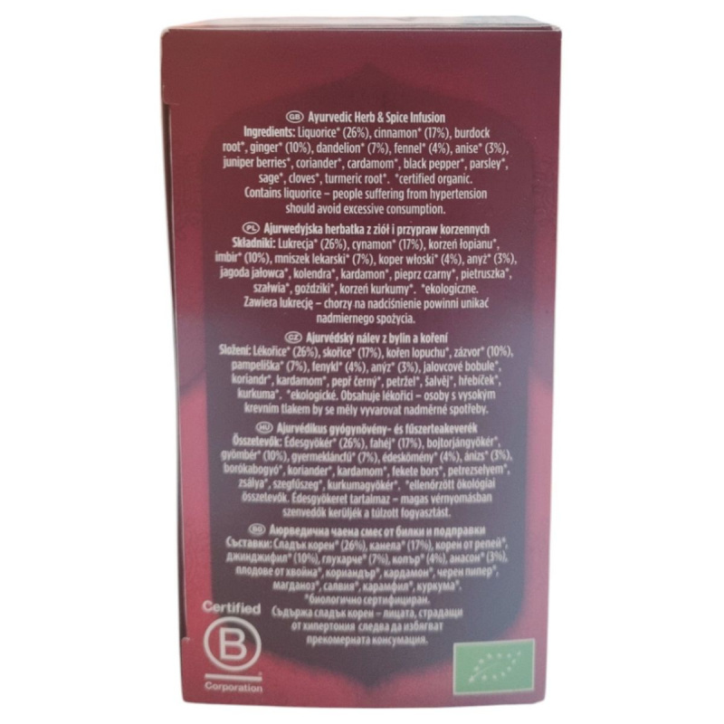A Yogi Tea Detox egy 100%-ban bio és vegán gyógynövénytea, melynek alapját az édesgyökér, gyermekláncfű, fahéj és gyömbér adja. Az ayurvédikus receptúra segíti a szervezet megtisztulását, és támogatja a testi-lelki egyensúlyt. A tea harmonikus ízvilága tökéletes választás lehet az újrakezdéshez és a mindennapi méregtelenítő rutin kiegészítéséhez. A termék koffeinmentes, így a nap bármely szakaszában fogyasztható.