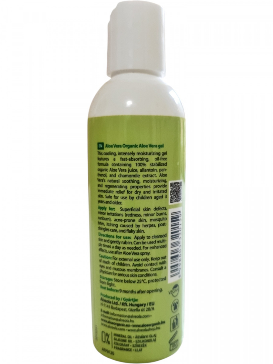 Ez a hűsítő, intenzíven hidratáló gél könnyen beszívódó, olajmentes formula, amely 100%-ban stabilizált organikus Aloe Vera levet, allantoint, panthenolt és kamilla kivonatot tartalmaz.