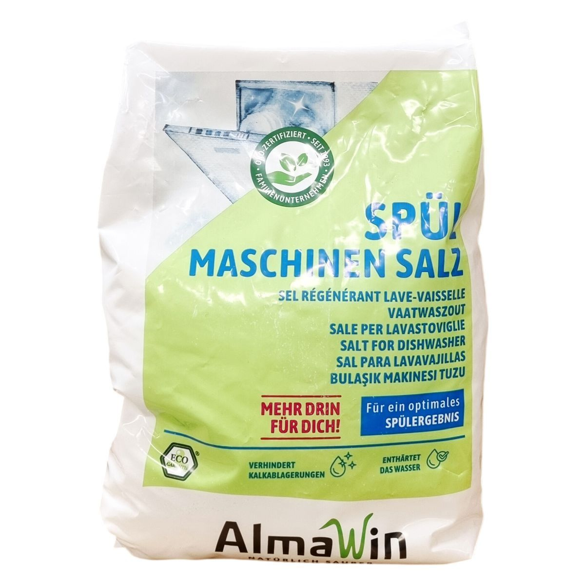 Az AlmaWin regeneráló só mosogatógépekhez biztosítja az optimális vízkeménységet, megvédi az edényeket és a gépet a káros vízkőlerakódástól, miközben teljesen feloldódik a mosogatás során. Az összetevő kizárólag 100% nátrium-klorid (CAS-szám: 7647-14-5). A környezetvédelem érdekében ajánlott a mosogatógépet csak teljesen feltöltött állapotban működtetni, alacsony hőmérsékletű programokat választani, valamint a sót takarékosan adagolni. A termék Németországban készült és rendelkezik vegán minősítéssel, hivatalosan Ecogarantie tanúsítvánnyal ellátott.