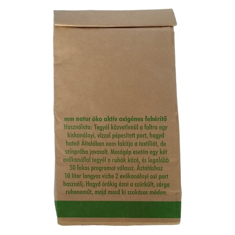 100% nátrium perkarbonát, mely az idő és hőmérséklet függvényében a felszabaduló oxigén hatására képes mindenféle folt eltávolítására és a textíliák fehérítésére.