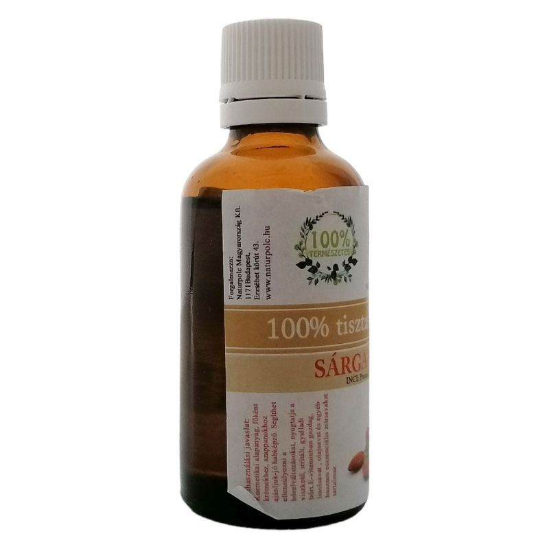 Teljesen finomított, átlátszó világossárga. Hidegen sajtolt, szárított sárgabarackmagból kerül kivonásra az olaj.
