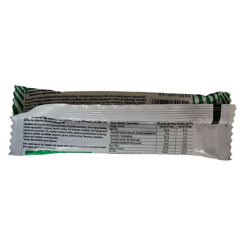 Miért különleges az AbsoBAR ZERO? Vegán, glutén és laktózmentes: a speciális étrenddel rendelkezők is fogyaszthatják. Kiváló minőségű alapanyagokból készül: rizs- és borsóprotein felhasználásával. Teljes értékű fehérjeforrás: komplettált fehérjéből (tartalmaz minden aminosavat, amelyek a a szervezet számára nélkülözhetetlenek). Tartósítószer mentes: felesleges adalékagyagoktól mentes szelet. Minimum 27% vegán proteint tartalmaz: szuper harapnivaló, ha edzés előtt/alatt/után rád tör az éhség, vagy csak ennél valami finomat. Alacsony a cukortartalma: egy szelet kevesebb, mint 2 g cukrot tartalmaz. Rostban gazdag: a megfelelő mennyiségű rostbevitel fontos a jól működő emésztéshez, és teltségérzetet is biztosít.