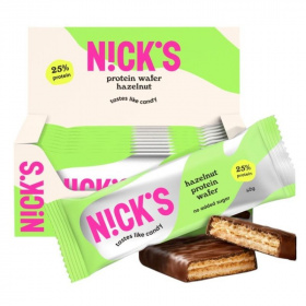Nick's mogyorós fehérjeszelet 40 g - gluténmentes, hozzáadott cukor nélkül készült, prebiotikus összetevővel,10-félE-vitaminnal. Cukor helyett stevia, eritrit és xilit keveréke került felhasználására, mesterséges édesítőszert nem tartalmaz. 30%-os fehérjetartalmú, mogyorós krémmel töltött ropogós ostya lágy tejcsokoládé borítással, megújult recept alapján! A hozzáadott cikóriagyökér rostnak köszönhetően prebiotikus hatású. Fogyasztását ajánljunk sportolók, nehéz fizikai munkát végzők, cukorbetegek, gluténérzékenyek és tudatosan táplálkozók számára!