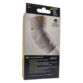 Termékjellemzők és termékelőnyök: A sima, egyszerű design követi a könyök formáját és ruha alatt sem látszik. Duplán rugalmas, erős kötött anyag az optimális illeszkedésért és kényelemért. Megnyugtató melegséget és nyomást biztosít. Puha szélek az egész napos viselési kényelemért. Egyszerű le- és felvenni. Jobb és bal könyéken egyaránt alkalmazható.