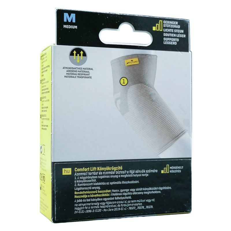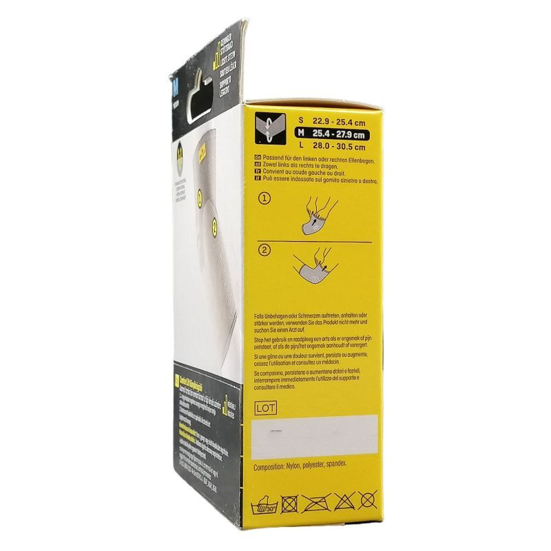 M (25,5-28,0 cm). Csak egyszerűen húzza fel a könyökrögzítőt mindennapi tevékenységei előtt. Foglalkozzon azokkal a dolgokkal, amiket szeret! Speciális jellemzők: Duplán rugalmas, erős kötött anyag az optimális illeszkedésért és kényelemért. Alkalmazható: rándulás, húzódás, ízületi gyulladás, duzzanat, ínhüvelygyulladás esetén. Terméktípus: Zárt. Termékjellemzők és termékelőnyök: Tartást és védelmet nyújt, tehermentesít. A sima, egyszerű design követi a könyök formáját és ruha alatt sem látszik. Légáteresztő, duplán rugalmas anyaga puha és könnyű viseletet biztosít egész nap. Egész napos, kényelmes viseletre készült a puha, könnyű, légáteresztő anyagának köszönhetően. Egyszerű le- és felvenni. Jobb és bal könyökön egyaránt alkalmazható.
