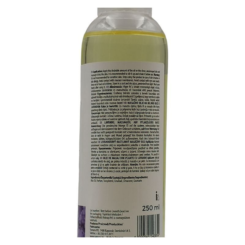 Elbűvölő illatával ellazít, miközben a növényi hatóanyagok biológiailag aktívak maradnak a masszázs során a bőrbe juttatva, így célzottan tudják elvégezni feladatukat. Összetevők INCI: Olus Oil, Lavandula Angustifolia Oil, Linalool, Coumarin.