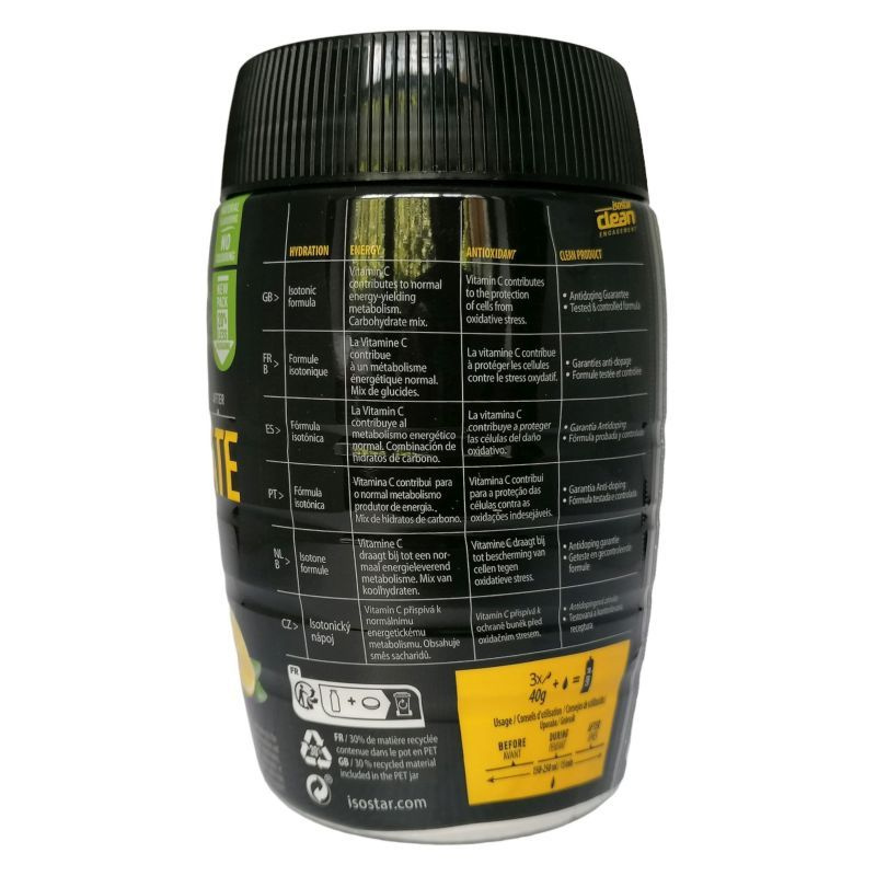 Az Isostar izotóniás sportitalpor ásványi anyagokat, egyszerű és összetett szénhidrátokat és B1-vitamint tartalmaz frissítő citromos ízben.