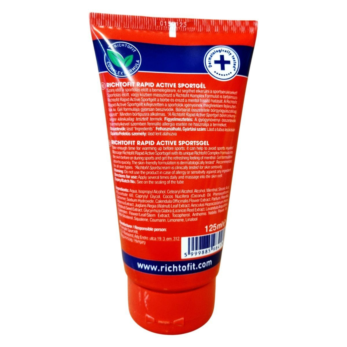 A Richtofit Rapid Active Sportgél a sportolók igényeinek megfelelően fejlesztett, gyorsan beszívódó, frissítő és regeneráló hatású kozmetikai készítmény. Különleges, gyógynövény-kivonatokkal gazdagított Komplex Formula segíthet a sportolás előtti bemelegítésben és a fáradt izmok ápolásában. Természetes összetevői – mint a vadgesztenye, levendula, körömvirág, édesgyökér és diólevél kivonat – a bőr vitalitását és komfortérzetét támogathatják. Dermatológiailag tesztelt, bőrbarát termék, amely minden bőrtípusra alkalmazható.
