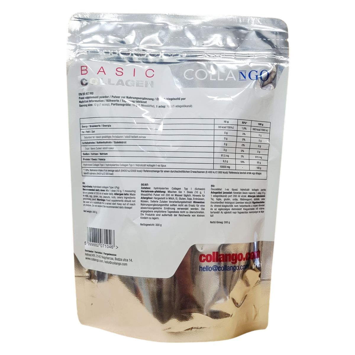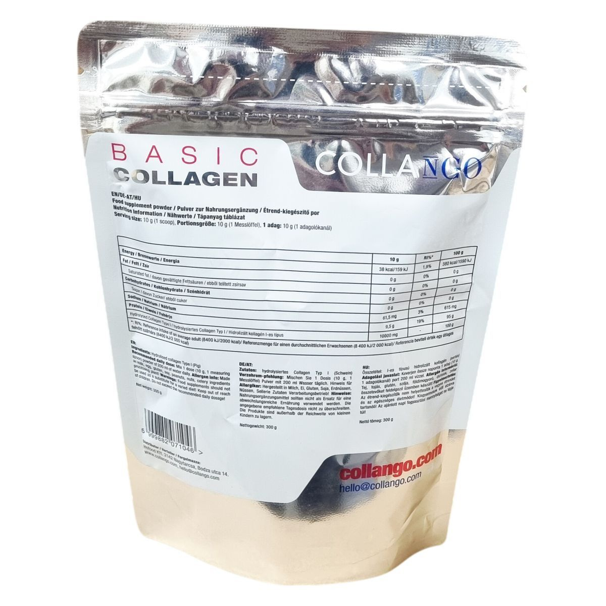 A Collango Basic Collagen egy ízesítetlen, hidrolizált sertés eredetű kollagén peptideket tartalmazó por, amely napi rendszeres alkalmazásra javasolt. A termék kizárólag I-es típusú kollagént tartalmaz, amely speciálisan előállított, könnyen oldódó formában érhető el. A por bekeverése egyszerű, 1 adag (10 g) port 200 ml vízben kell elkeverni. Fontos megjegyezni, hogy a termék gyártása olyan üzemben történik, ahol tej, tojás, földimogyoró, diófélék és zeller alapanyagokat is feldolgoznak, ennek megfelelően allergén információk figyelembevétele ajánlott. Az étrend-kiegészítők nem helyettesítik a változatos étrendet és az egészséges életmódot, ezért a termék alkalmazása mellett ezek betartása javasolt. A pontos adagolás és a gyermekektől való elzárás kiemelten fontos a biztonságos használathoz.