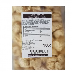 A szárított kockák sárgaborsófehérje koncentrátumból készülnek, magas növényi fehérjetartalommal.