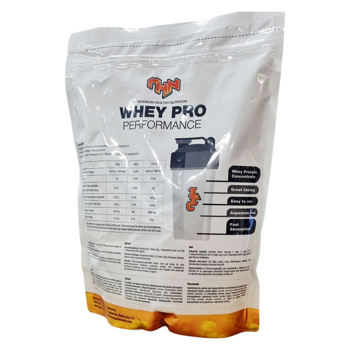 A MHN Whey Pro Performance egy aszpartám-mentes, gyors felszívódású tejsavó fehérje koncentrátumból készült táplálékkiegészítő, mely alacsony zsírtartalmú, cukor hozzáadása nélkül. Az ízletes és könnyen keverhető formula mindennapos használatra ideális lehet a sportolók számára az izomtámogatás és regeneráció elősegítése érdekében. A termék nem tartalmaz GMO összetevőket, és leellenőrzött minőségű. Az adagolás ajánlott napi 30-60 g, tejjel vagy vízzel elkeverve fogyasztva, étkezések között vagy edzés után. A készítmény allergénként tej, tojás, glutén, szója, földimogyoró, diófélék és zeller nyomokat tartalmazó üzemben készül.