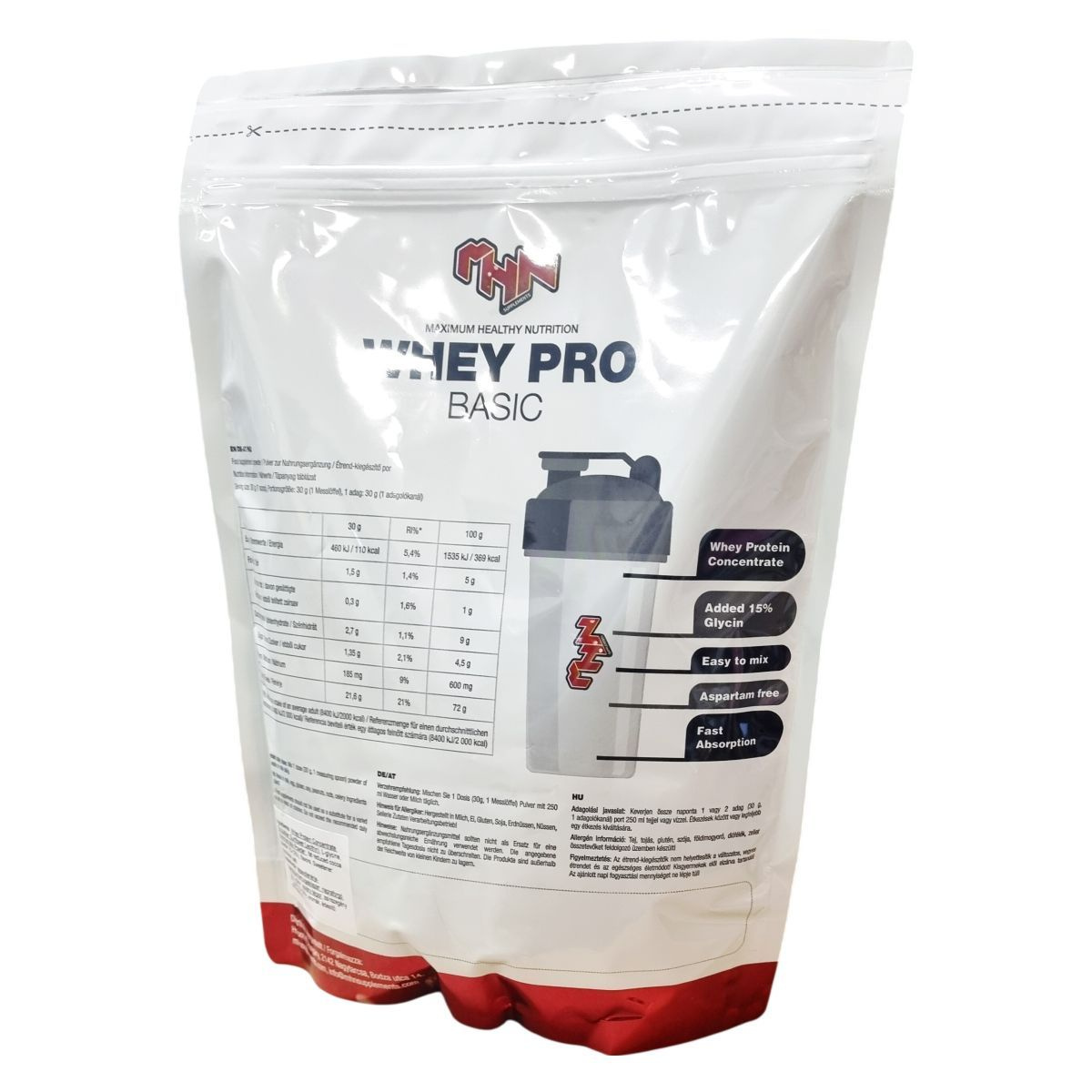 A Whey Pro Basic aszpartámmentes, alacsony zsírtartalmú fehérjepor, amely könnyen oldódik és laboratóriumokban tesztelt összetételű. Különlegessége a hozzáadott 15% glicin, ami hozzájárulhat az izomzat támogatásához. Az adagolókanállal mérve könnyen adagolható, finom holland csokoládé ízű termék, GMO-mentes. Az energia- és tápérték táblázat alapján egy adag 110 kcal energiát biztosít, miközben jelentős mennyiségű fehérjét tartalmaz, így akár aktív életmódot folytatók étrendjében is helyet kaphat.