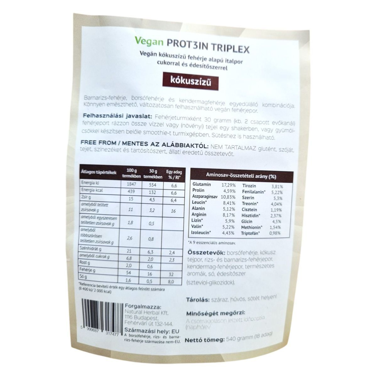 Netamin Vegan Prot3in Triplex fehérjepor - kókusz 540g