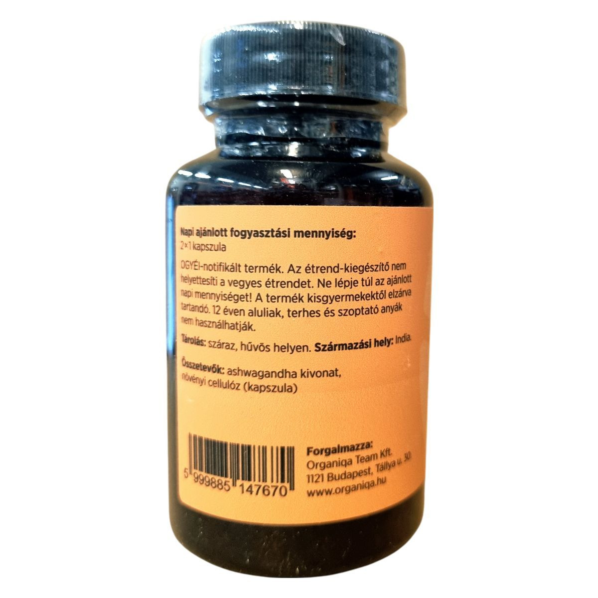 Az Organiqa Ashwagandha Kivonat egy vegán étrend-kiegészítő, amely 60 kapszulát tartalmaz. A termék fő összetevője az ashwagandha 10:1 kivonat, amely napi 1000 mg mennyiségben található meg a javasolt napi adagban. Az étrend-kiegészítő OGYÉI-notifikált, és nem helyettesíti a vegyes étrendet. A termék tárolása száraz, hűvös helyen javasolt. Az Organiqa Team Kft. forgalmazza a terméket, amely Indiából származik. Fontos figyelmeztetés, hogy a termék nem ajánlott 12 éven aluliaknak, terhes és szoptató anyáknak.
