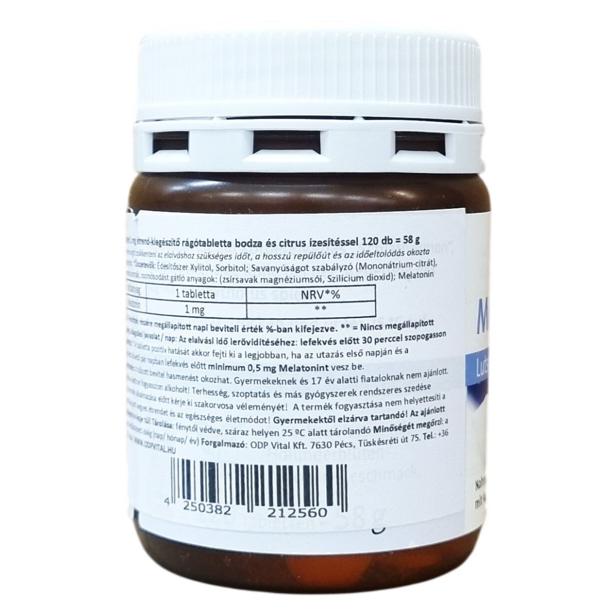 Rágótablettánként 1mg melatonint tartalmazó étrendkiegészítő.