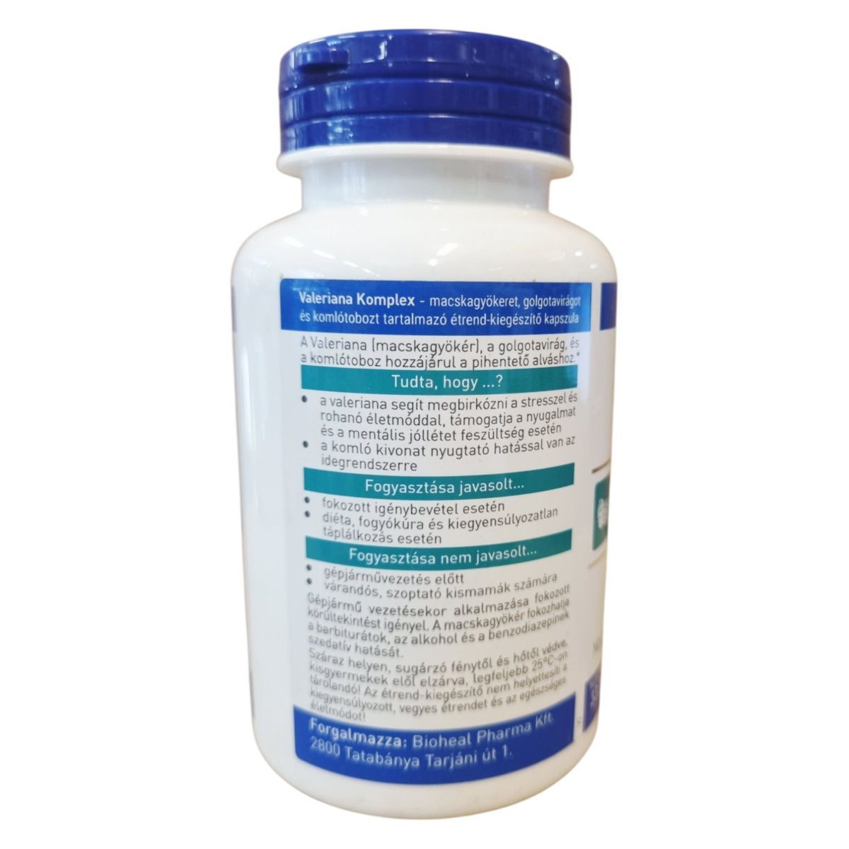 A Valeriana Komplex étrend-kiegészítő kapszula macskagyökeret, golgotavirágot és komlótobozt tartalmaz, amelyek hozzájárulhatnak a pihentető alváshoz és segíthetnek a stressz kezelésében. A termék fogyasztása javasolt fokozott igénybevétel, diéta, fogyókúra és kiegyensúlyozatlan táplálkozás esetén. Az étrend-kiegészítő nem helyettesíti a vegyes étrendet és az egészséges életmódot. Minőségét megőrzi a doboz alján jelzett időpontig.