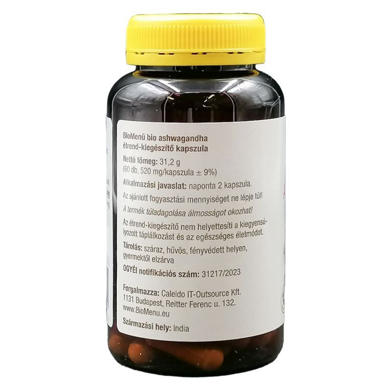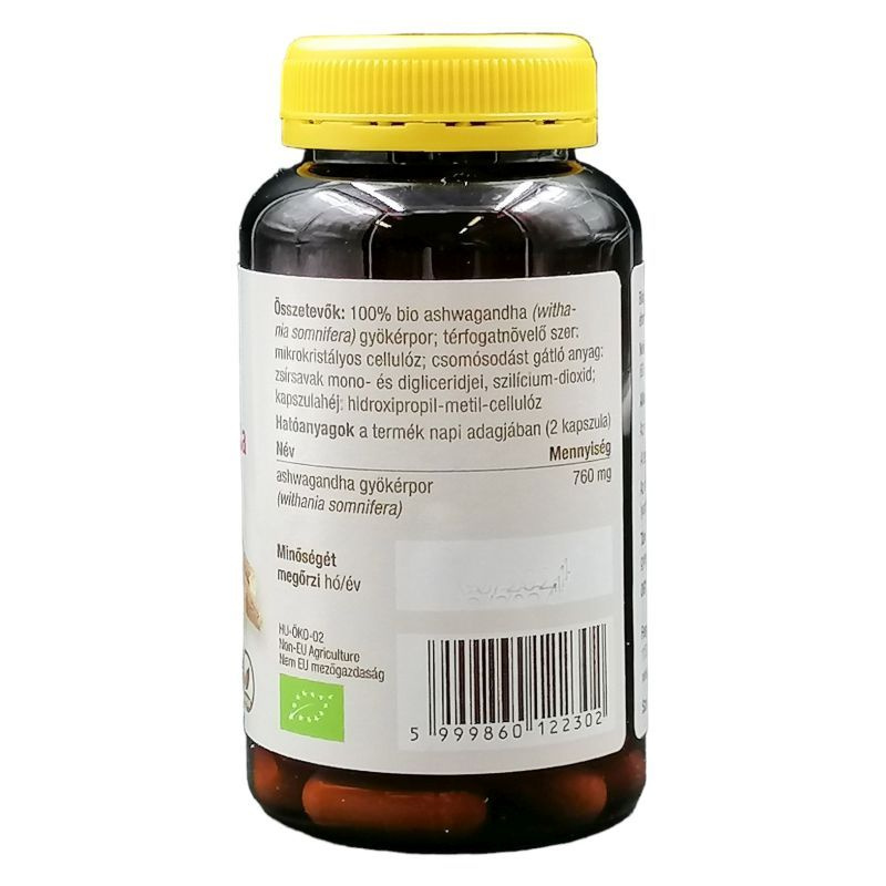 A BioMenü BIO Ashwagandha por a withania somnifera fa gyökerének őrleménye, amely természetes módon nő Indiában, különösen a szárazabb területeken. 100%-ban természetes, GMO mentes, nem tartalmaz adalékanyagokat, vegyszert és szennyeződéseket sem. Az ashwagandhát széles körben használták az ayurvédikus, hagyományos indiai orvoslásban. Az ashwagandhát nyári cseresznyének vagy indiai ginsengnek is nevezik, bár botanikailag különbözik a ginseng családtól. Világosbarnás színű, enyhén mogyorós illatú. Nagyon enyhén keserű ízű. Az ashwagandha számos hasznos tápanyagot tartalmaz, köztük anolidokat, alkaloidokat, kolint, zsírsavat, aminosavakat és különböző cukrokat.