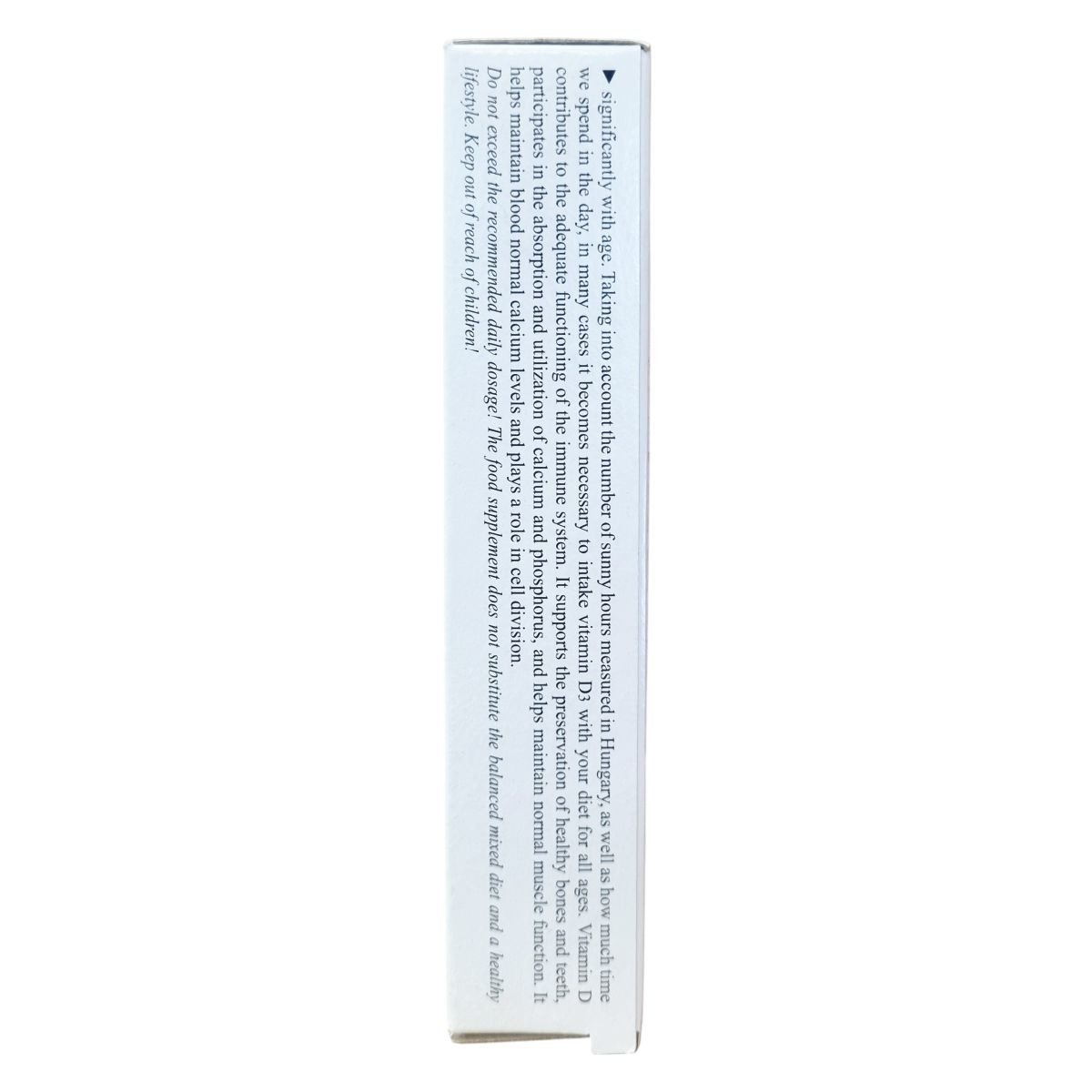 A D3-vitamin (kolekalciferol) egy zsírban oldódó vitamin és prohormon, amely a szervezetben aktív hormonszerű vegyületté alakul. A bőrben UVB-sugárzás hatására képződik, majd a májban és a vesében történő átalakulás után a kalcium- és foszfát-anyagcsere szabályozásában játszik szerepet. Hozzájárulhat a normál csontozat és fogazat fenntartásához, valamint támogathatja az immunrendszer megfelelő működését. Részt vesz a sejtosztódási folyamatok szabályozásában és az izomműködés fenntartásában is. Hiánya csökkent napfény-expozíció vagy elégtelen bevitel esetén alakulhat ki. Megfelelő adagolás mellett biztonságos, ugyanakkor túladagolása hiperkalcémiához vezethet. Egyéni egészségügyi állapot vagy gyógyszerszedés esetén javasolt szakemberrel konzultálni.