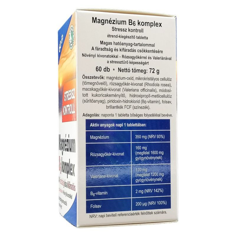 Magas hatóanyagtartalmú készítmény. A rózsagyökér-kivonat adaptogén gyógynövényként hozzájárul a stresszel szembeni védekezéshez, segíti a koncentrációt és a mentális teljesítményt stressz esetén. A Valeriana segít megbirkózni a rohanó életvitel okozta stresszel, támogatja a mentális állapotot feszültség, stressz esetén. A magnézium és a B6-vitamin támogatják az idegrendszer megfelelő működését, a folsav, a magnézium és a B6-vitamin hozzájárulnak a fáradtság és kifáradás csökkentéséhez, a normál pszichológiai funkció fenntartásához.