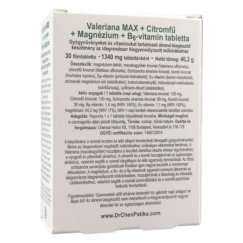 Dr. Chen Valeriana MAX + Citromfű + Magnézium + B6-vitamin tabletta 30db