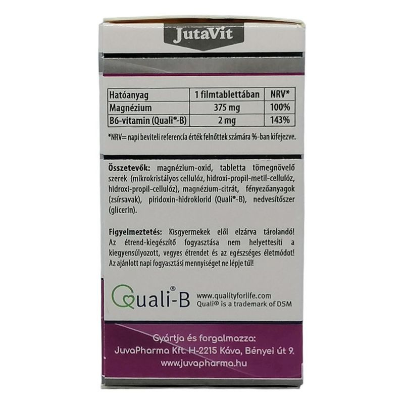 magnézium-oxid, tabletta tömegnövelő szerek (mikrokristályos cellulóz, hidroxi-propil-metil-cellulóz, hidroxi-propil-cellulóz), magnézium-citrát, fényezőanyagok (zsírsavak), piridoxin-hidroklorid (Quali-B), nedvesítőszer (glicerin).