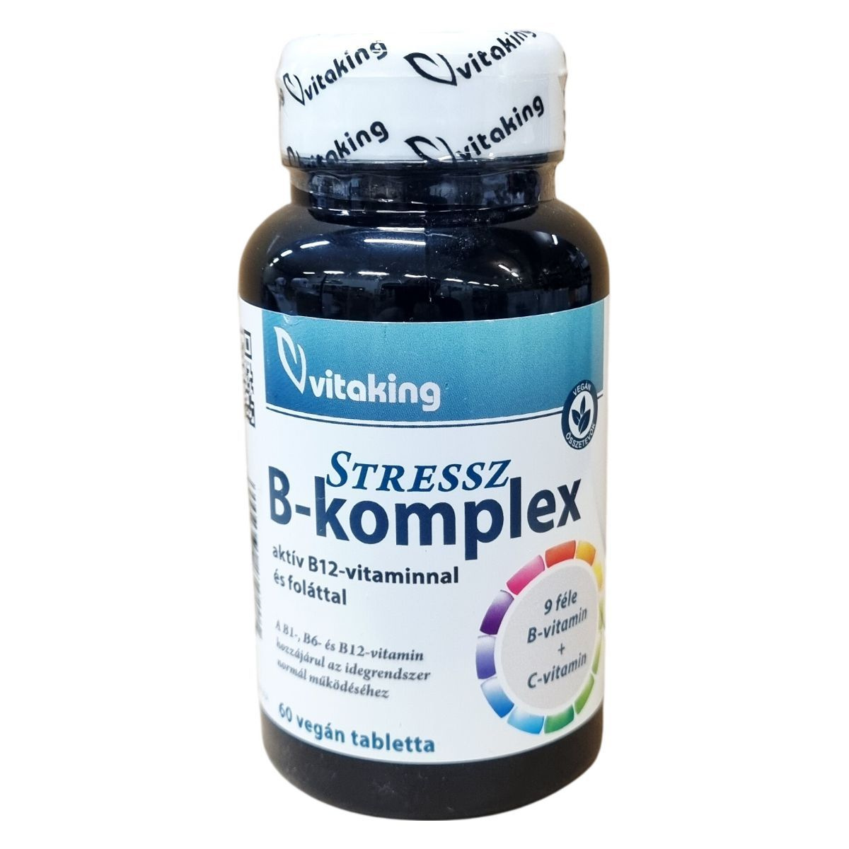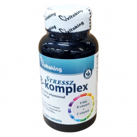 A Stressz B-komplex étrend-kiegészítő kilencféle B-vitamint és C-vitamint tartalmaz, amelyek hozzájárulhatnak az idegrendszer normál működéséhez, a pszichológiai funkciók fenntartásához, valamint a fáradtság és kifáradás csökkentéséhez. A termék metilkobalamint, kalcium-L-metil-folátot és biotint is tartalmaz, amelyek kulcsfontosságúak lehetnek a test megfelelő működéséhez. Vegán tabletta formájában kapható, amely napi egy tabletta bevételével ajánlott beépíteni az étrendbe. A készítmény összetevői között szerepelnek olyan anyagok is, mint az aszkorbinsav, tiamin-mononitrát, riboflavin és para-aminobenzoesav, valamint különféle tömegnövelő, stabilizáló, csomósodást gátló és színező anyagok. A terméket száraz, hűvös és fénytől védett helyen kell tárolni, gyermekektől elzárva. Az étrend-kiegészítő nem helyettesíti a változatos étrendet és az egészséges életmódot.