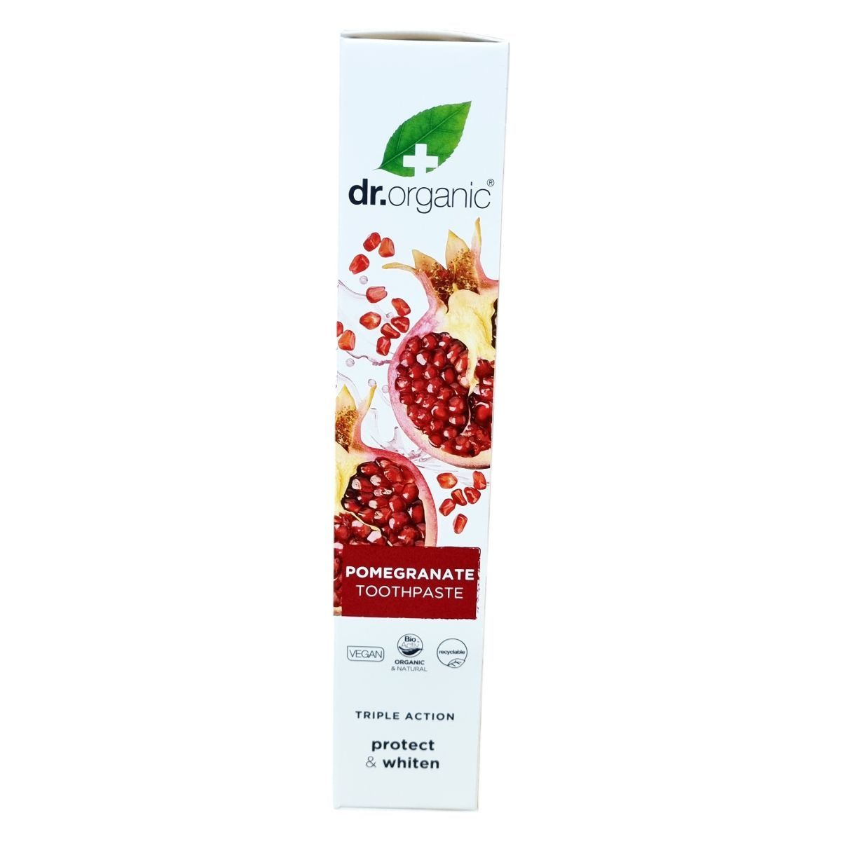 A Dr. Organic bio gránátalma tartalmú fogkrémje hármas hatással rendelkezik: természetesen fehéríti a fogakat, véd a fogszuvasodás ellen és frissíti a leheletet. Nátrium-monofluorofoszfátot tartalmaz, amely 1000 ppm fluoridot biztosít. Az összetevők organikusak és vegánok, továbbá a termék újrahasznosítható csomagolásban kerül forgalomba. A fogkrém alkalmazása során különösen fontos a gyermekek fogmosásának felügyelete és a csökkentett mennyiség használata 6 éves kor alatt a fluoridbevitel miatt. Használatával természetes és hatékony szájápolást biztosíthatunk, fenntartva a szájhigiéniát és a fogak egészségét.