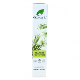 A dr.organic® TEA TREE fogkrém organikus és természetes alapanyagokból készül, és bio aktiv összetevőket tartalmaz, amelyek hozzájárulnak a fogak tisztaságához és egészségéhez. A termék újrahasznosítható csomagolásban érkezik, és állatkísérlet-mentes minősítéssel rendelkezik. A fogkrém nátrium-monofluorofoszfátot tartalmaz, amely 1000 ppm fluoridot biztosít a fogszuvasodás elleni védelemhez. A használati útmutató szerint a terméket orális használatra fejlesztették ki, és a gyermekfogmosás során szigorú felügyelet mellett alkalmazandó, különösen 6 év alatti gyermekek esetében. A termékben lévő hatóanyagok között szerepel a bio teafaolaj, mentalevél olaj, valamint izlandi zuzmó kivonat, amelyek tisztító és frissítő hatásúak. A csomagolás jelzése alapján 12 hónapig használható a felbontás után. A gyártás helye Olaszország.