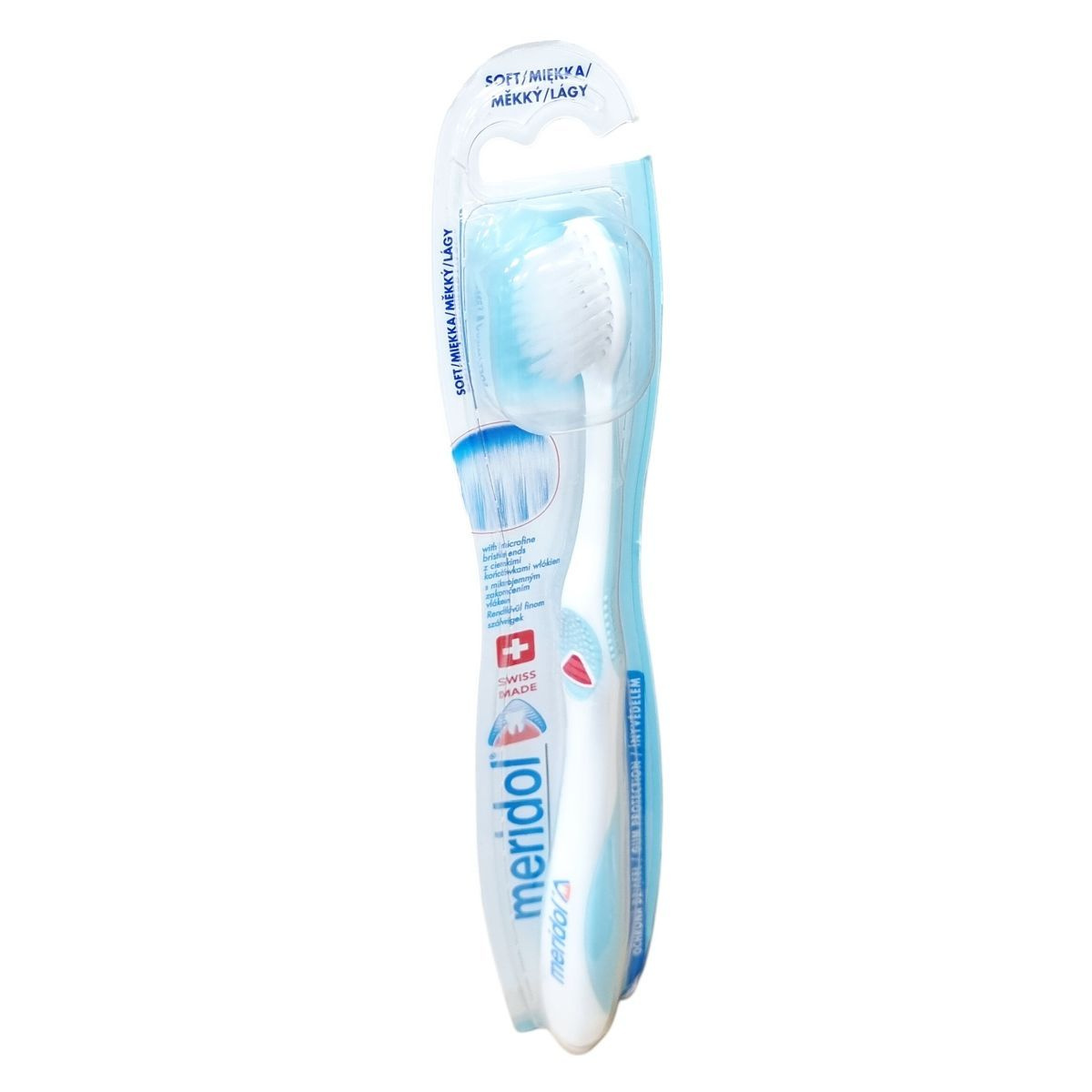 A meridol Soft fogkefe alkalmas az érzékeny fogíny ápolására, mikrofinom szálvégei alaposan és kíméletesen tisztítják a fogakat, hozzájárulva a fogínygyulladás megelőzéséhez. A fej finombevonattal rendelkezik, a nyél ergonómikus kialakítású a könnyű használat érdekében. A terméket szakemberekkel együttműködve fejlesztették ki és klinikai tesztek igazolják hatékonyságát. Svájcban készült minőségi termék, amelyhez a meridol kutatócsapata biztosítja a szakmai hátteret. A termék csomagolásán feltüntetett azonosító szám: 3284CH30K, valamint vonalkód: 7610108043149. A meridol termékcsalád arcot is ad a fogínyvédelmi megoldásoknak.