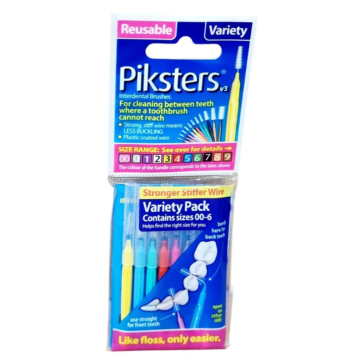 A Piksters fogköztisztító kefék különféle méretekben (00-9) elérhetők, a fogantyú színe a méretnek megfelelően változik. Erős és merev drótot használnak, hogy csökkentsék a görbülést használat közben. A kefék alkalmasak a plakk és ételmaradék eltávolítására a fogak közötti területeken, különösen ott, ahol a fogkefe nem ér el. Használhatók egy kézzel és alkalmasak a hátsó fogakhoz a hajlítási funkcióval, míg az elülső fogakhoz egyenesen alkalmazhatók. A termék megkönnyíti a fogközök tisztítását, ami segíthet csökkenteni az ínybetegségek kockázatát és a kellemetlen leheletet. A gyártás Kínában történik, a termék dizájnját Ausztráliában fejlesztették ki, és nemzetközi forgalmazásban érhető el.