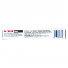 A Lacalut White fehérítő hatású fogkrém kíméletesen tisztítja a fogakat, megőrzi természetes fehérségüket és erősségüket, miközben védi a fogzománcot.