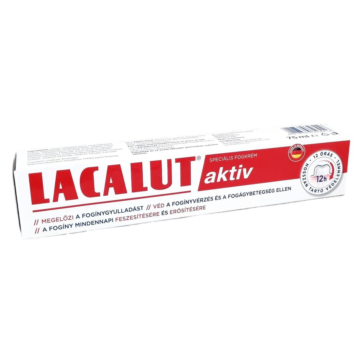 A LACALUT aktiv fogkrém hatékonyan megelőzi a fogínygyulladást és a fogágybetegséget, miközben erősíti és feszesíti a fogínyt, 12 órás hosszan tartó védelmet nyújtva.