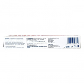 A LACALUT aktiv fogkrém Németországban készült, és speciálisan a fogínyvérzés, fogínygyulladás és fogágybetegség megelőzésére fejlesztették ki. A magas fluoridtartalom hatékony védelmet nyújt a fogszuvasodás ellen, míg a speciális összetevők – köztük a hidroxiapatit és a klórhexidin-diglukonát – segítik a fogíny erősítését és a kellemetlen érzékenység csökkentését. A termék titán-dioxid-mentes, és 12 órás hosszan tartó védelmet biztosít a biofilm-képződés megakadályozásával. A fogkrémet fogorvosok tesztelték, így megbízható mindennapos használatra.