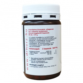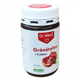 A Dr.Herz® Gránátalma + C-vitamin kapszula természetes alapanyagokból, gránátalma kivonatból és C-vitaminból készül. A C-vitamin hozzájárulhat a normál kollagén képződéshez, ezáltal támogathatja az erek normál állapotának és működésének fenntartását. Ezen felül szerepe lehet az idegrendszer és az immunrendszer normál működésének fenntartásában, különösen intenzív testmozgás alatt vagy azt követően. A kapszula napi kétszeri adagolása javasolt, mindig bőséges folyadékkal, szétrágás nélkül, főétkezések előtt. A termék nem helyettesíti a kiegyensúlyozott étrendet és az egészséges életmódot, valamint gyermekek elől gondosan elzárva kell tartani.