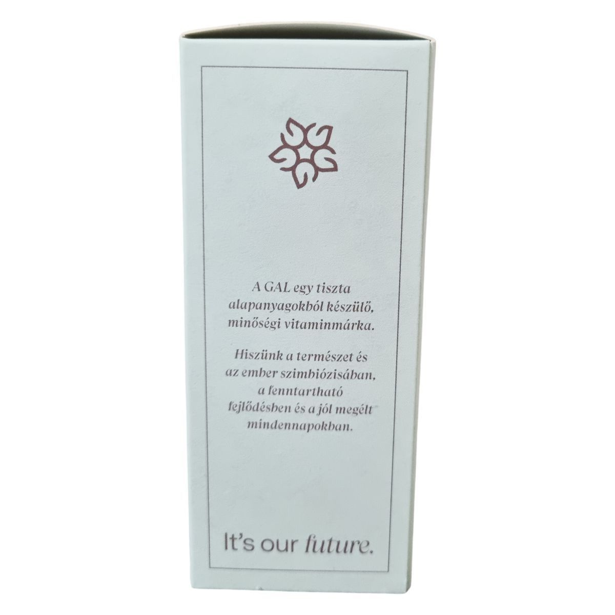 Termékünkben a Golden Omega® halolaj-koncentrátum természetes változatát alkalmazzuk, amely nulla ökológiai lábnyommal előállított apróhalakból készül, biodiverzitást figyelembe vevő halászatból. IFFO RS és Friends of the Sea tanúsítványokkal rendelkezik. A halak feldolgozása a kifogás után azonnal megtörténik, nincs TMAO, alacsony TOTOX érték. Szabadalmaztatott eljárás során az omega-3 tartalom és stabilitás megmarad. A terméket antioxidáns-keverékkel stabilizálták, mely MSPO minősítésű pálmaolajból és természetes E-vitamin-komplexből áll (8 féle tokoferol + tokotrienol). Természetes formában tartalmazza az omega-3 zsírsavakat, nem etil-észter formában. A termék TÜV ISO 9001:2015 tanúsított folyamatok szerint készült. A GAL egy tiszta alapanyagokból készülő vitamincsalád, amely a fenntartható fejlődést támogatja. It’s our future.