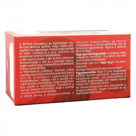 Összetevők: Betain, Terminalia Chebula kivonat, B6-vitamin, B12-vitamin, B9-vitamin (folát), Króm
