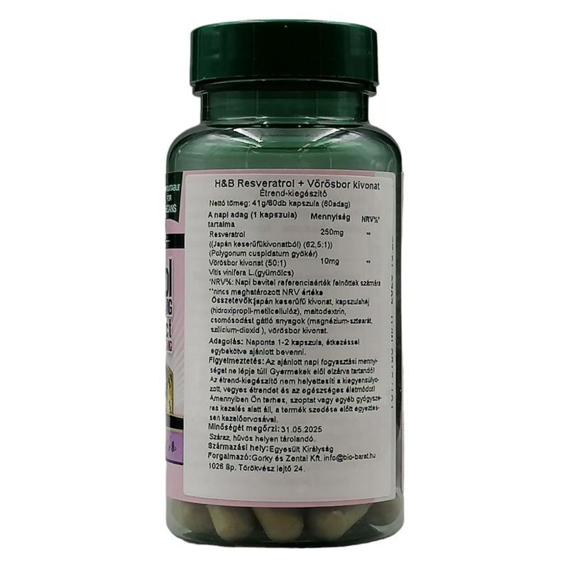 250 mg rezveratrolt és 10 mg vörösbor-kivonatot tartalmaz