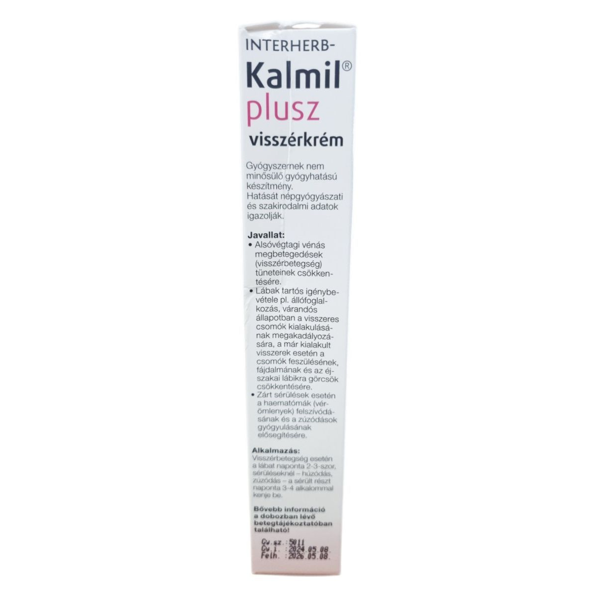 Az INTERHERB Kalmil plusz visszérkrém egy gyógyhatású készítmény, amely az alsóvégtagi vénás megbetegedések tüneteinek csökkentésére szolgálhat. Alkalmas lehet a lábak tartós igénybevételére, például állófoglalkozás vagy várandós állapot esetén a visszeres csomók kialakulásának megakadályozására. Továbbá, a már kialakult visszerek esetén a csomók feszülésének, fájdalmának és az éjszakai lábikra görcsök csökkentésére is alkalmazható. Zárt sérülések esetén a haematómák felszívódásának és a zúzódások gyógyulásának elősegítésére is használható. A termék fontos hatóanyagai közé tartozik a csukamájolaj, az alumínium-acetát-tartarát-oldat, a körömvirág paraffinos kivonata és az alumínium-kálium-szulfát. A krém alkalmazása során figyelni kell az esetleges allergiás reakciókra, és 12 év alatti gyermekeknél nem javasolt a használata.