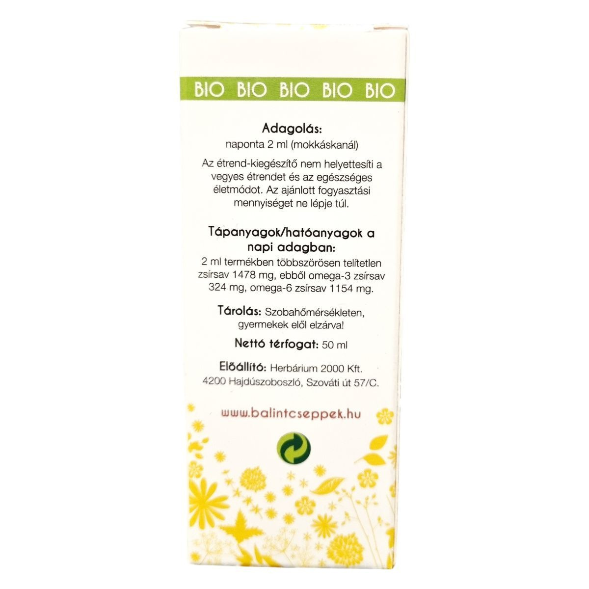 A BÁLINT Cseppek kendermag-olaj készítmény ökológiai gazdálkodásból származó minősített bio alapanyagokat tartalmaz. A termék több mint 50%-ban tartalmaz többszörösen telítetlen zsírsavakat, elsősorban omega-3 és -6 zsírsavakat, valamint egyszeresen telítetlen zsírsavakat, köztük olajsavat. A telített zsírsavak telítetlen zsírsavakkal való helyettesítése hozzájárulhat a vér normál koleszterinszintjének fenntartásához. A termék 50 ml kiszerelésben érhető el, és hidegen sajtolt eljárással készül, megőrizve természetes hatóanyagait és minőségét.