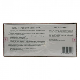 Jól alkalmazható legyengült, vagy lábadozó betegek állapotának helyreállítására. Jól szolgálja az immunrendszert, serkenti bizonyos immunsejtek termelődését. Megfelelő mennyiségben fogyasztva segít leküzdeni a kimerültséget, a stresszt és a depressziót. A gyomorműködésre is pozitív hatással van: étvágygerjesztő hatású, serkenti az emésztést. Csökkenti a sugárkezelés okozta sejtkárosodást, emellett véd az alkohol roncsoló hatása ellen, fokozza az agytevékenységet és az adrenalin kibocsátást. Az agyat tartósan éber állapotban tartja, így késlelteti a fáradtságérzet kialakulását. A ginzeng egyik legkedvezőbb tulajdonságaként tartják számon, hogy tulajdonképpen normalizáló funkciója van, tehát az egész szervezetet erősíti, tekintet nélkül a kórállapot irányára. Állapottól függően stimulál, vagy épp nyugtat, csillapít. A kínaiak által régóta alkalmazott ginzeng-méhpempő együttes alkalmazása jól bevált immunerősítő. Alkalmazás: Napi egy ampulla, éhgyomorra elfogyasztva, nagy pohár vízzel leöblítve. Terhesek és gyermekek ne fogyasszák. Összetétel: Ginseng gyökér kivonat, méhpempő. Tárolás: Száraz, Hűvös helyen.