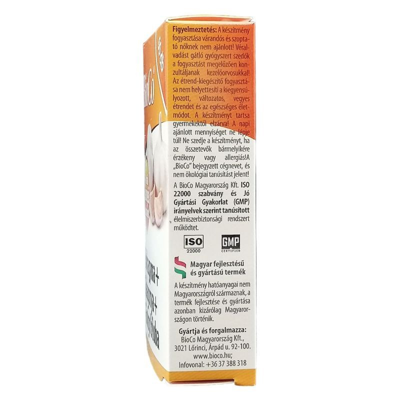 Adagolás: naponta 2 tablettát bő folyadékkal lenyelni. Hatóanyagok 2 tablettában: Fokhagyma kivonat: 300 mg -ebből allicin: 3 mg, Galagonya kivonat: 200 mg, Ginkgo biloba kivonat: 64 mg -ebből flavon glikozidok: 15,36 mg -ebből terpén lakton: 3,84 mg, C-vitamin: 80 mg. Összetevők: tömegnövelő szer (mikrokristályos cellulóz); maltodextrin; fokhagyma kivonat (150 mg/tabletta); galagonya kivonat (100 mg/tabletta); L-aszkorbinsav; fényező anyag (sztearinsav); csomósodást gátlók (talkum, szilícium-dioxid); Ginkgo biloba kivonat (32 mg/tabletta). 54 g / 60 db. OÉTI notifikációs szám: 15191/2014. Tárolás: A készítményt tartsa gyermekektől elzárva, száraz helyen, napfénytől védve, legfeljebb 25 °C-on! Figyelmeztetés: A készítmény fogyasztása várandós és szoptató nőknek nem ajánlott! Véralvadást gátló gyógyszert szedők a fogyasztást megelőzően konzultáljanak kezelőorvosukkal! Az étrend-kiegészítő fogyasztása nem helyettesíti a kiegyensúlyozott, változatos, vegyes étrendet és az egészséges életmódot. A készítményt tartsa gyermekektől elzárva! A napi ajánlott mennyiséget ne lépje túl! Ne szedje a készítményt, ha az összetevők bármelyikére érzékeny vagy allergiás!