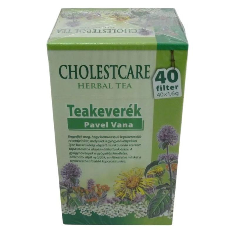 Cholestcare tea 40 filteres kiszerelésben a cseh füvesember Pavel Vana nevével fémjelezve.