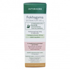 A INTERHERB Fokhagyma EXTRAKTUM 100 mg kapszula a fokhagyma tradicionális előnyeit kínálja, hozzájárulhat a vérlipid- és koleszterinszint szabályozásához, valamint a szív- és érrendszer egészséges működéséhez. A termék szagtalanító eljárással készül, így a fokhagyma kellemetlen utóíze nem érezhető. A bélben oldódó kapszula hatékony felszívódást biztosíthat. A fokhagyma kivonat szerepet játszhat a káros mikroorganizmusok elleni védelemben, és támogathatja az immunrendszer egészséges működését.