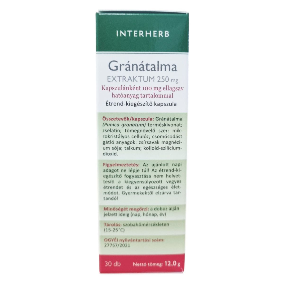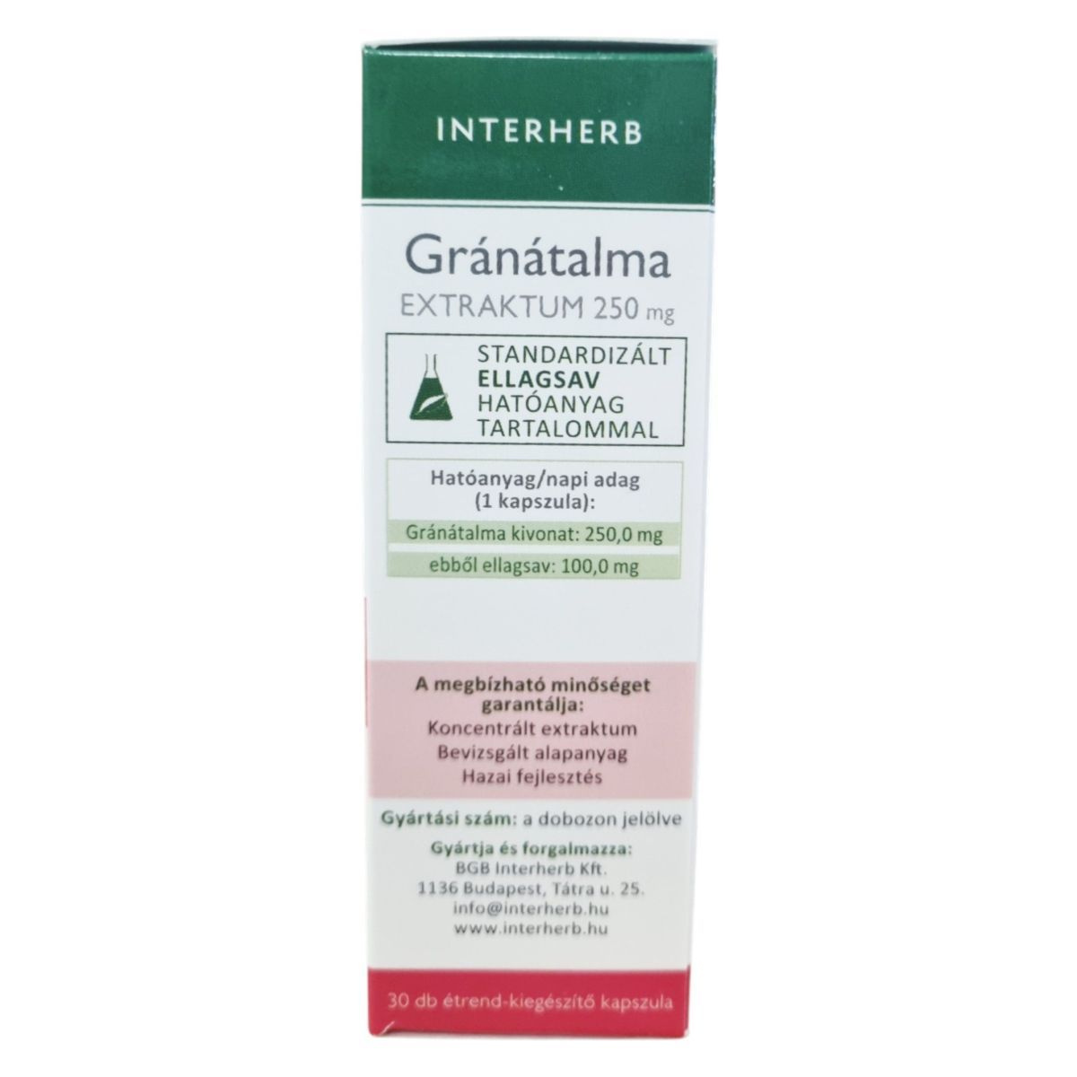Gránátalma kivonat: 250,0 mg, ebből ellagsav: 100,0 mg