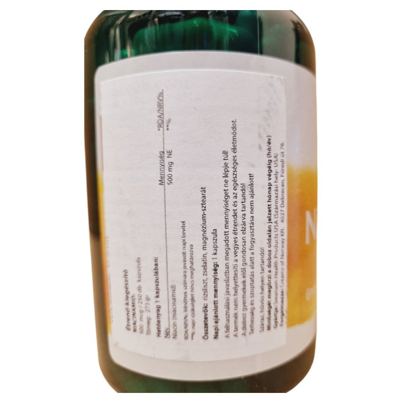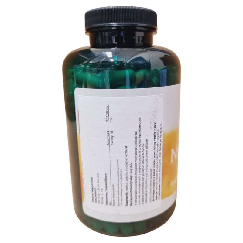 A Niacinamid étrend-kiegészítő 500 mg-os kapszulái niacint tartalmaznak, amely hozzájárulhat a szervezet normál működéséhez.