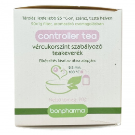 A Controller tea aromazáró csomagolásban, 20 gramm nettó tömeggel (20 db 1 grammos filter) kapható. A termék az EU területén készült, és kizárólag természetes alapanyagokat tartalmaz. A Bonpharma termékcsalád részeként ez a vércukorszint szabályozó teakeverék a természetes gyógyítás eszközeivel támogatja a szervezet egészséges működését.