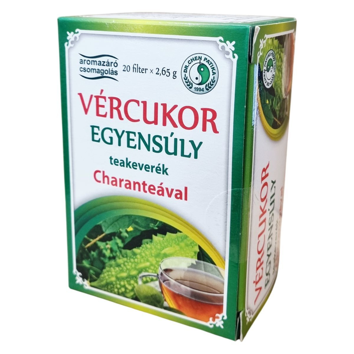 A vércukor egyensúly teakeverék hatékonyan egyesíti a balzsamkörte (Momordica charantia), gyermekláncfű, fahéj, édesgyökér és gyömbér természetes előnyeit. A fahéj, a gyömbér és a gyermekláncfű támogatják a normál vércukorszint fenntartását. A termék több mint 30 éve fogyasztók bizalmát élvezi a Dr. Chen Patika minőségi gyártási gyakorlatával, amely biztosítja a megbízható és ellenőrzött termék előállítását. A teakeverék 20 darab filterből áll, melyek aromazáró csomagolásban vannak, így megőrzik frissességüket és hatóanyagaikat.