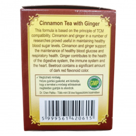 A fahéj és a gyömbér hagyományos kínai orvoslás elvei alapján összeállított formula, melyet számos kutatás igazolt hatékonysággal az egészséges vércukorszint fenntartásában. Továbbá a légutak egészségét is támogatja. A gyömbér elősegíti az emésztőrendszer, az immunrendszer és a szív egészségét. A cékla jelentős mennyiségű sötétvörös flavonoid színanyagot tartalmaz, amelyek antioxidáns tulajdonságúak. A termék aromazáró csomagolásban kerül forgalomba, így megőrzi frissességét. A javasolt adag naponta két csésze tea fogyasztása.