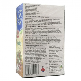 Elkészítés: Egy filtert leforrázzuk kb. 500 ml forró vízzel és 10 percig állni hagyjuk. Az elkészült italt langyosan fogyasszuk. Naponta 2x fogyasztható. Összetevők: szúrós gyöngyajak, cseregalagonya levél és virág, lapacho kéreg, fehér fagyöngy, olajfa levél, orvosi pemetefű. Kiszerelés: 20 db filter (20x3g)
