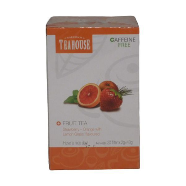 Összetevők: eper ízesítésű gyümölcs tea, narancs ízesítésű gyümölcs tea, citromfű.
